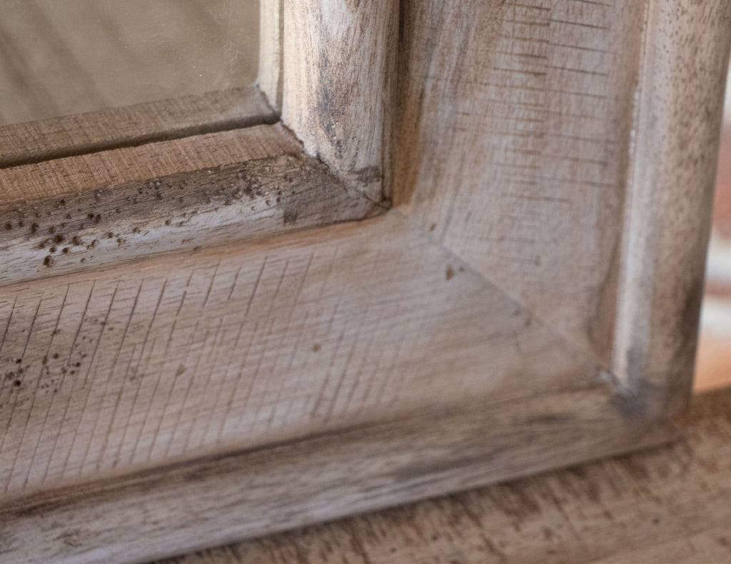 Bedroom Mirror. The Aruba collection is inspired by the grandeur of the Old World. Each piece is meticulously crafted from... Bedroom Mirror. The Aruba collection is inspired by the grandeur of the Old World. Each piece is meticulously crafted from 100% sustainable mango wood. Our case goods boast elegantly hand-turned details that add a touch of sophistication to any space. The enchanting drift sand finish further enhances the inherent beauty of the mango wood grain, accentuating its natural mineral deposits and creating a truly distinctive texture and depth.Product Features Crafted of solid mango wood. A drift sand finish is applied using a hand-rubbed technique in a multi-step process. Mortise and tenon construction offers stability and durability. Mirror sold separately. Aruba - Mirror - Drift Sand41.0"W x 2.25"D x 40.5"H - 43.0 lb View more