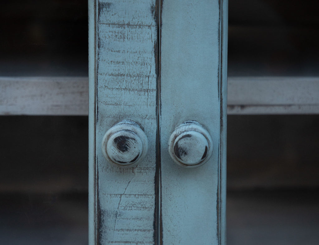 3 Drawer 2 Doors 70" TV Stand. The Aruba collection is inspired by the grandeur of the Old World. Each... 3 Drawer 2 Doors 70" TV Stand. The Aruba collection is inspired by the grandeur of the Old World. Each piece is meticulously crafted from 100% sustainable mango wood. Our case goods boast elegantly hand-turned details that add a touch of sophistication to any space. The enchanting white and sky blue finish further enhances the inherent beauty of the mango wood, creating a truly distinctive texture and depth.Product Features Crafted of solid mango wood. A white antiqued finish is applied using a hand-rubbed technique in a multi-step process. Doors and drawers feature a sky blue tone. Mortise and tenon construction offers stability and durability. English dovetail on 100% solid wood drawer fronts. Hafele steel slides. Glass doors equipped with magnetic catches. Wooden knob pulls. Shelves enhance storage capacity. Aruba - TV Stand / Console With 3 Drawers And 2 Doors - Off White / Sky Blue70.0"W x 19.0"D x 34.75"H - 142.0 lb View more