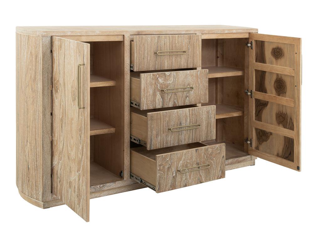 4 Drawer & 2 Door Buffet. Our Balam collection is handcrafted from mango and teak wood. This simple yet stunning collection will bring an organic, modern touch to your space. The Balam buffet highlight the wood's unique grain and offers ample storage for your essentials, making it a striking addition to any room décor you choose to design. The Balam collection not only improves your home aesthetics but also highlights skilled craftsmanship. Transform your space with these practical and attractive pieces.