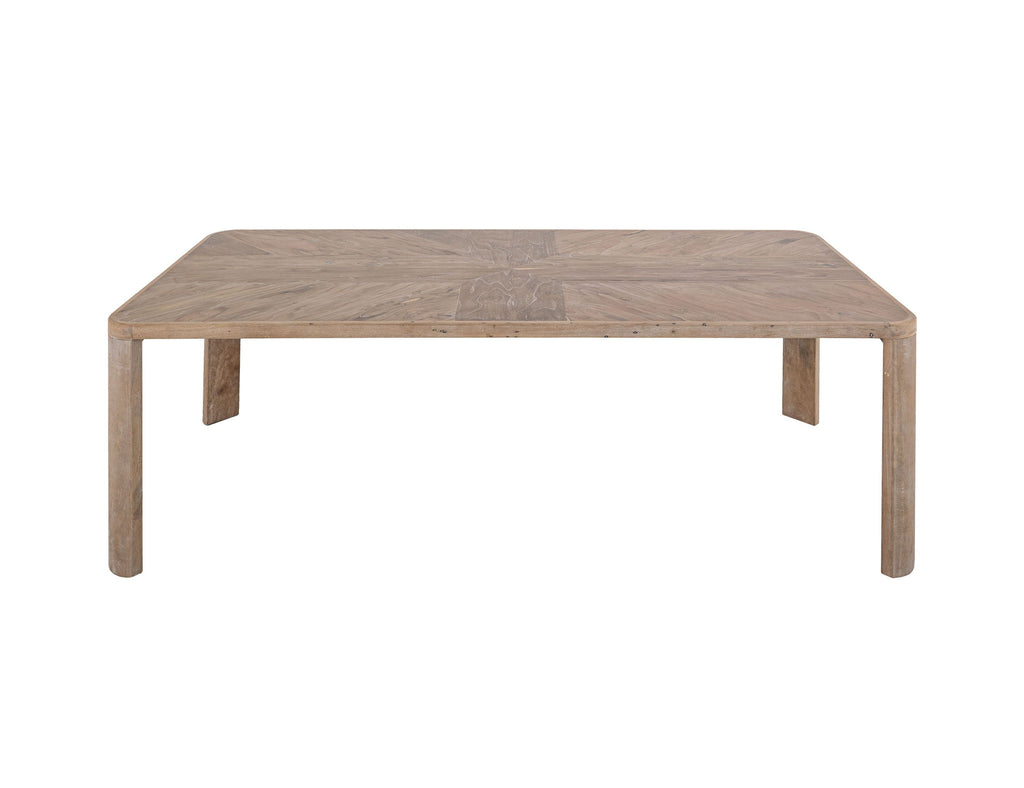 Dining Table. The Balam Dining Table is a stunning tribute to nature's beauty, combining timeless craftsmanship with modern versatility. Its... Dining Table. The Balam Dining Table is a stunning tribute to nature's beauty, combining timeless craftsmanship with modern versatility. Its framed tabletop, featuring elegantly rounded edges and crafted from mango and engineered teak wood, showcases vibrant grain details and exceptional durability. The multi-step lacquer white finish enhances the wood's natural depth, creating a striking visual effect. The legs, crafted from solid mango wood, offer robust support and a rich, organic texture that enhances any space. With the enduring strength of mortise and tenon joinery, this table guarantees long-lasting stability while seamlessly blending traditional techniques with contemporary design. Elevate your dining experience by pairing this table with the stylish chairs available in the collection, creating an inviting atmosphere in your home.Product Features Crafted of sustainable mango and teak wood. Translucent multi-step stained white finish Mortise and tenon construction offers stability and durability. Balam - Table - Ivory White86.5"W x 39.25"D x 29.25"H - 121.0 lb View more