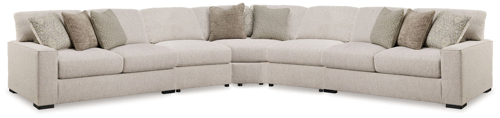 Reminiscent of a fine, subtly patterned herringbone jacket, this casually elegant sectional offers contemporary style in spades. A distinctive curved... Reminiscent of a fine, subtly patterned herringbone jacket, this casually elegant sectional offers contemporary style in spades. A distinctive curved shape provides plenty of leg room, while soft feather-blend cushions maximize relaxation. Why skimp on comfort and style? With this sectional, you have space to lounge solo or hang out with friends and family. Ballyton - 3-Piece Sectional - Sand127.5"W x 127.5"D x 42.0"H - 448.0 lb Ballyton - 4-Piece Sectional - Sand159.5"W x 127.5"D x 42.0"H - 541.0 lb Ballyton - 5-Piece Sectional - Sand159.5"W x 159.5"D x 42.0"H - 634.0 lb View more