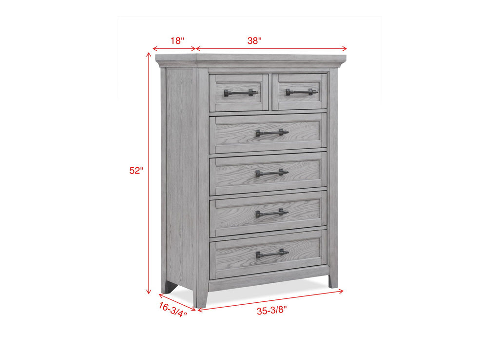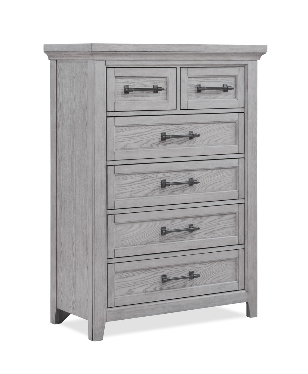 This bedroom suite offers a refreshing take on rustic charm, featuring a soft greige finish that highlights the natural wood... This bedroom suite offers a refreshing take on rustic charm, featuring a soft greige finish that highlights the natural wood grain. The sturdy bed stands as the centerpiece with its robust headboard and inviting design, while the accompanying pieces — a nightstand, dresser, and chest — provide ample storage, each fitted with understated hardware that accentuates the collection's country-inspired look.Product Features Dovetail drawer construction Kenlin drawer guides Statement hardware Beckett - Chest - Greige38.0"W x 18.0"D x 52.0"H - 158.4 lb View more