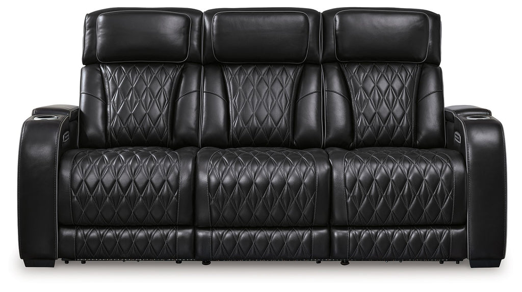 Ready to take your reclining experience to the next level? Then sit up and take notice. With this power reclining... Ready to take your reclining experience to the next level? Then sit up and take notice. With this power reclining sofa, ultimate relaxation is at your fingertips. Experience the pure bliss of an air massage system and heated seats at the touch of a button. The center seat is crafted with a drop-down table with power/USB plug-ins and dual cup holders. Plus the luxurious diamond-stitched upholstery is easy on the eyes, adding elegance to any space. Boyington - Power Reclining Sofa With Adj Headrest - Gray86.0"W x 40.0"D x 44.5"H - 353.0 lb Boyington - Power Reclining Sofa With Adj Headrest - Black86.0"W x 40.0"D x 44.5"H - 351.0 lb View more