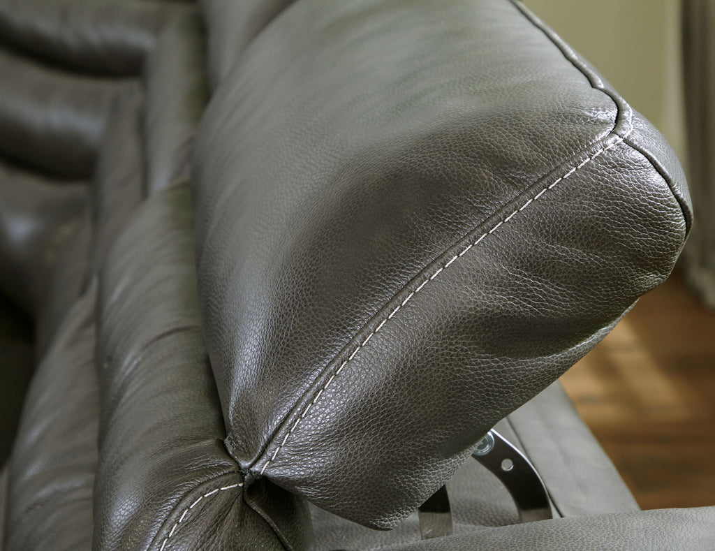 For those seeking to curate a living room retreat that offers superior comfort and a contemporary aesthetic, this sleekly designed... For those seeking to curate a living room retreat that offers superior comfort and a contemporary aesthetic, this sleekly designed power reclining loveseat with console will become your favorite source of at-home serenity. Rest on real leather in the spacious seating area, and use the one-touch power control to recline and adjust the headrests with ease. As you recharge after a long day, your devices can too with USB charging. Center Line - Zero Wall Recliners 5 Pc Sectional - Dark Gray709.0 lb Center Line - Zero Wall Recliners 6 Pc Sectional - Dark Gray767.0 lb Center Line - Power Reclining Loveseat with Console 3 Pc Sectional - Dark Gray402.0 lb Center Line - 2-Piece Power Reclining Loveseat - Dark Gray80.75"W x 40.0"D x 35.0"H - 344.0 lb Center Line - 3-Piece Power Reclining Sectional - Dark Gray110.5"W x 40.0"D x 35.0"H - 424.0 lb Center Line - 4-Piece Power Reclining Sectional - Dark Gray120.5"W x 90.75"D x 35.0"H - 584.0 lb Center Line - 7-Piece Power Reclining Sectional - Dark Gray138.25"W x 138.25"D x 35.0"H - 825.0 lb View more