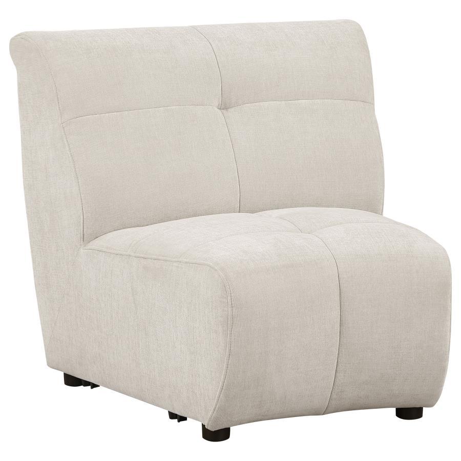 Elevate your living space with this armless chair. Its sleek, minimalist silhouette offers a sanctuary of comfort, the soft ivory fabric whispering luxury and adaptability to any room's palette. The chair's subtle curves welcome relaxation, while the plump, foam-filled cushions and delicate tufting detail infuse a touch of elegance. Perfect alone for a cozy reading nook or as part of a grander arrangement, this armless chair promises to be the cornerstone of a stylish, inviting retreat that’s as suited for quiet contemplation as it is for lively gatherings.