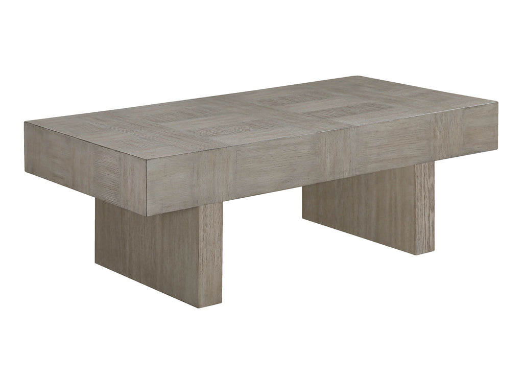 Introduce a bold statement to your living room with this striking cocktail table set, designed to captivate with its unique... Introduce a bold statement to your living room with this striking cocktail table set, designed to captivate with its unique geometric aesthetic and robust construction. Each piece in the set features a substantial, block-like design, showcasing a richly textured wood finish that adds a touch of natural elegance. The clean, architectural lines create a powerful visual impact, making this set a perfect centerpiece for modern or contemporary spaces. The solid construction ensures durability and stability, while the generous surface area provides ample space for decorative items, books, or beverages. Elevate your home décor with this exceptional cocktail table set, offering a blend of form and function that transforms your living area into a sophisticated and stylish haven.Crawley - Coffee Table - Light Brown Dimensions 52"L x 26"D x 18"H Weight 59.40 lbs Crawley - End Table - Light Brown Dimensions 22"L x 22"D x 22"H Weight 38.72 lbs Product Features Geometric grid veneer Block style legs Solid wood legs View more