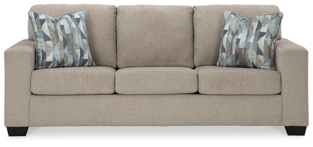 You’re in for a neat treat with this sofa. Its comfy seats are covered in soft, textural upholstery, and the... You’re in for a neat treat with this sofa. Its comfy seats are covered in soft, textural upholstery, and the wide track arms are eager to support your quest for total relaxation. Distressed abstract toss pillows bring a fresh breath of contemporary style while accentuating the sofa's color. Additional Dimensions Arm height: 25" Distance between arms: 70" Seat depth: 21" Seat height: 20" Top of cushion to top of back: 18" Leg height: 3" Minimum width of doorway for delivery: 32" 22" Toss Pillow: 0" Deltona - Sofa - Parchment85.0"W x 38.0"D x 37.0"H - 129.0 lb Deltona - Sofa - Graphite85.0"W x 38.0"D x 37.0"H - 129.0 lb View more