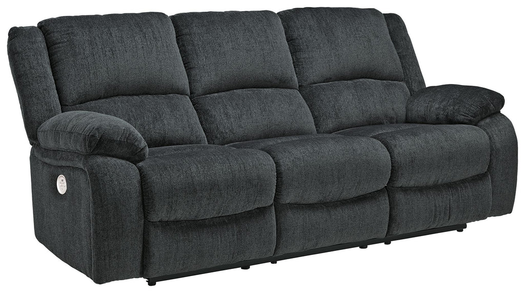 Built for luxury, this reclining sofa lets you kick back in reliable style. The thick, softly textured chenille upholstery provides... Built for luxury, this reclining sofa lets you kick back in reliable style. The thick, softly textured chenille upholstery provides a comfy surface on which to lounge. With bustle back construction and thickly cushioned armrests, this piece gives you the dependable support you need to unwind after a trying day. Draycoll - Reclining Power Sofa - Slate87.0"W x 40.0"D x 40.0"H - 231.0 lb Draycoll - Reclining Sofa - Dark Gray87.0"W x 40.0"D x 40.0"H - 210.0 lb View more