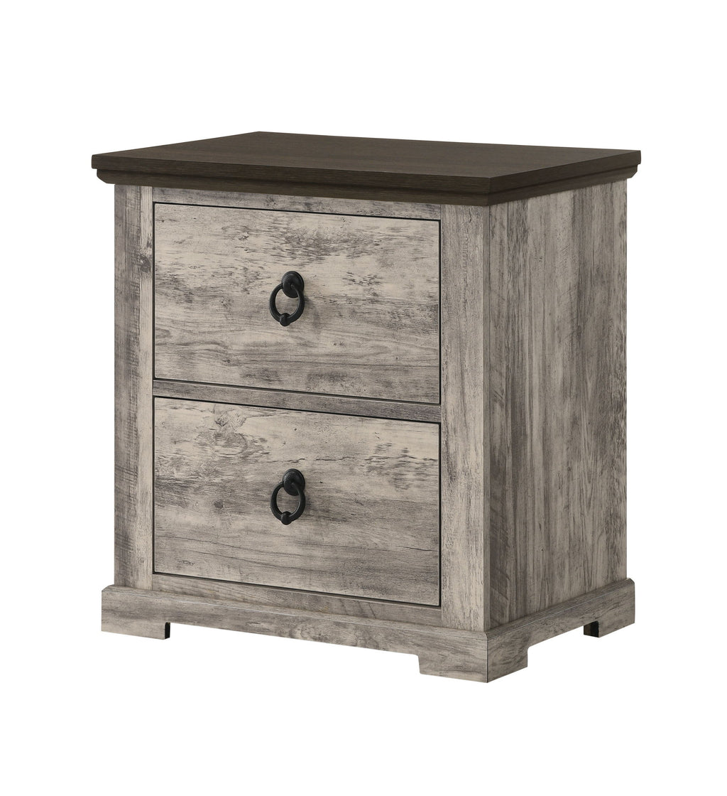 Immerse yourself in the rustic charm of this exquisite bedroom collection, where timeless design meets sophisticated craftsmanship. The set exudes... Immerse yourself in the rustic charm of this exquisite bedroom collection, where timeless design meets sophisticated craftsmanship. The set exudes a warm, weathered aesthetic that effortlessly complements any home decor, bringing an air of tranquil elegance to your personal sanctuary. Each piece is meticulously constructed with durability in mind, featuring robust frames, ample storage, and finely detailed hardware.Product Features 2 toned finish Ring pulls Ella-Mae - Nightstand - Gray23.62"W x 15.75"D x 25.2"H - 41.89 lb View more