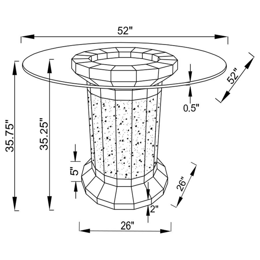 Host a small party at this modern glam counter height table. Designed in a column-inspired pedestal frame, this round table offers a sleek, classical aesthetic to your dining room or entertainment area. A sparkling faux diamond inlay mesmerizes and scintillates, creating a spectacular luxe expression. Around the flush base and top edges of the pedestal base is a mirror tile pattern that reflects the surrounding color palette. A round clear glass tabletop seats four to six guests effortlessly.