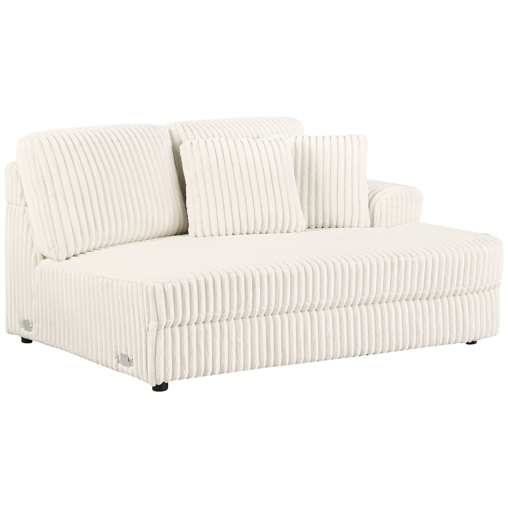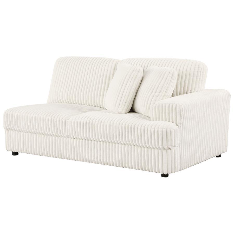 Experience ultimate comfort with the RAF cuddler, designed for cuddling and relaxation. Upholstered in ivory wide corduroy, this piece includes two pillows for added support and coziness, making it a great addition to your sectional.