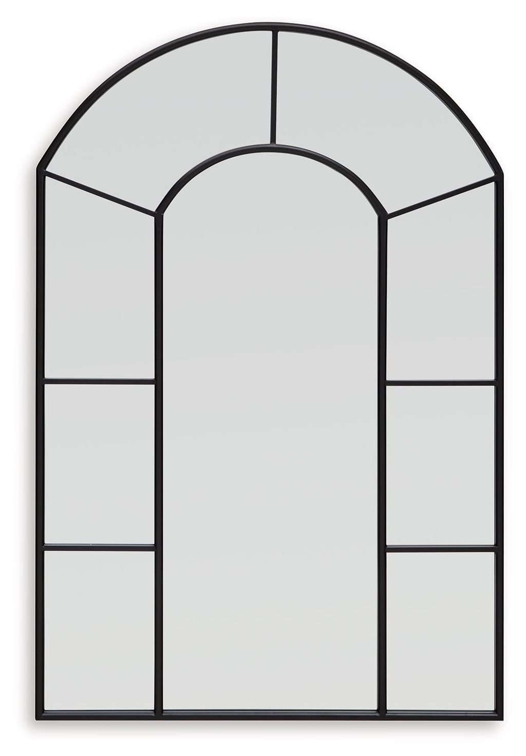 This mirror takes a classic wall accent and upgrades it with simple details. An arched design and paneled perimeter are... This mirror takes a classic wall accent and upgrades it with simple details. An arched design and paneled perimeter are framed with metal in a versatile black finish. Whether your room is casual or contemporary, this mirror effortlessly reflects the mood of your space.Additional DimensionsInner mirror: 0"Product Features Made with metal Black finish Keyhole bracket Vertical hanging only Evengton - Accent Mirror - Black32.0"W x 1.13"D x 48.0"H - 35.0 lb View more