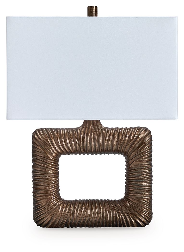 It’s hip to be square, thanks to this table lamp. A striking blend of art and lighting, its contemporary design... It’s hip to be square, thanks to this table lamp. A striking blend of art and lighting, its contemporary design and refined aesthetic are enhanced by sculptural elegance and an antiqued brass-tone finish. What a sophisticated way to light up your life.Additional DimensionsShade: 0"Product Features Made of cast aluminum with rectangle hardback fabric shade Antiqued brass-tone finish 3-way switch 1 E26 socket, type A bulb recommended (not included); 100 watts max or LED equivalent; UL Listed Minor assembly required; simply attach preassembled shade to lamp base Garronby - Metal Table Lamp - Antique Brass Finish17.5"W x 9.0"D x 24.0"H - 13.75 lb View more