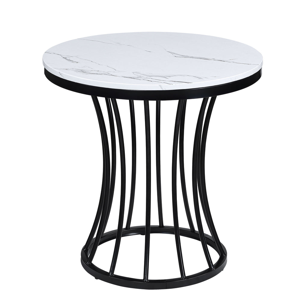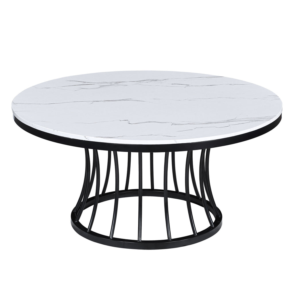 This cocktail set is a sophisticated blend of contemporary design and artistic flair, ideal for modern homes seeking a touch... This cocktail set is a sophisticated blend of contemporary design and artistic flair, ideal for modern homes seeking a touch of elegance. The set features sleek, round tables with a faux marble tops that are both beautiful and easy to care for. Each table's base is a sculptural marvel, with a dynamic, cage-like structure that is as sturdy as it is stylish.Hadley - Faux Marble Top For #4201-BASE - White Dimensions 38"L x 38"D x 18"H Weight 38.72 lbs Hadley - 3-Piece Cocktail Set Base - Black Dimensions 38"L x 38"D x 18"H Weight 23.76 lbs Product Features Faux marble top Resin finish Pedestal base Powder coated metal Iron tubing View more