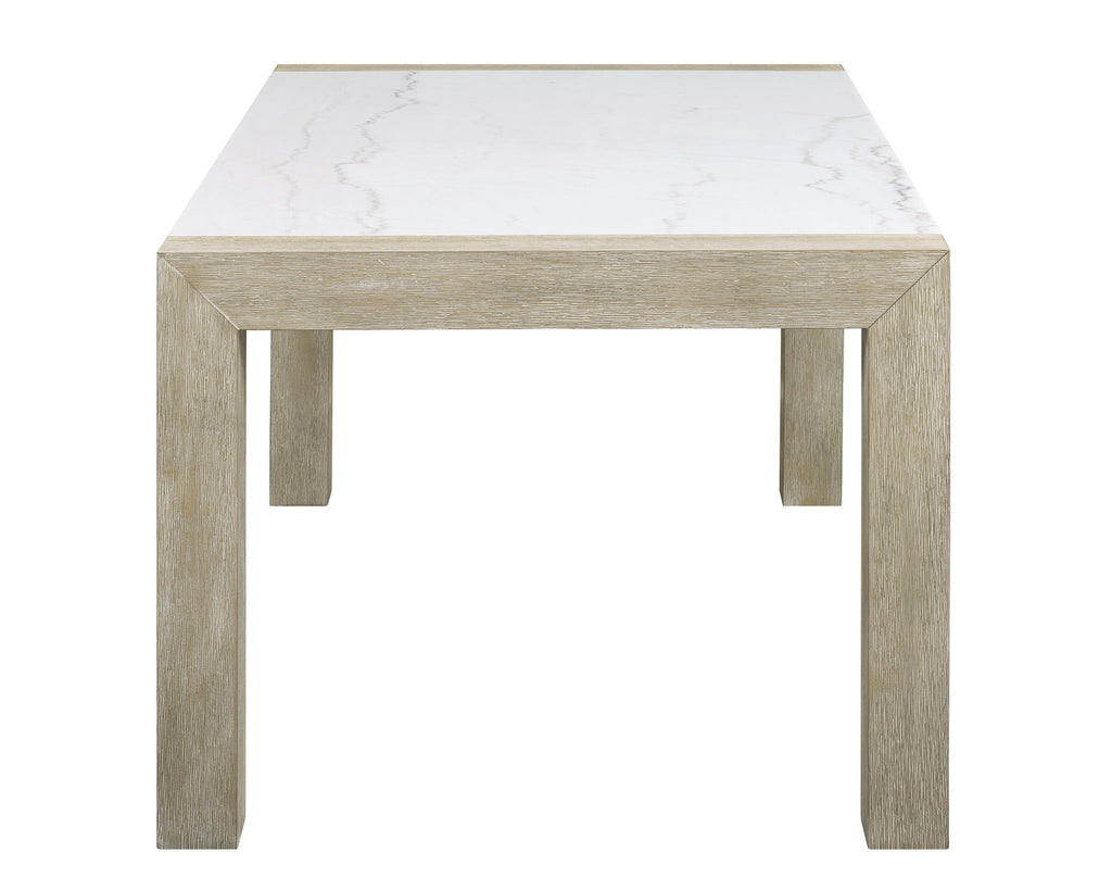 This dining set offers a clean, modern look with its sleek lines and neutral tones. The sturdy table with a... This dining set offers a clean, modern look with its sleek lines and neutral tones. The sturdy table with a genuine marble top is both stylish and timeless, paired with comfortable chairs and a matching bench that provide ample seating for family and friends. Its simplicity in design makes it versatile for a variety of dining room decors, while the compact size ensures it fits well in smaller spaces. Perfect for everyday meals and casual entertaining, this set delivers functionality and straightforward style.Hazel - Genuine Marble Dining Table Leg - Light Brown Dimensions 66"L x 38"D x 30"H Weight 45.10 lbs Hazel - Genuine Marble Dining Table Top - Wired White Dimensions 66"L x 38"D x 30"H Weight 130.46 lbs Product Features Genuine marble top Square legs View more