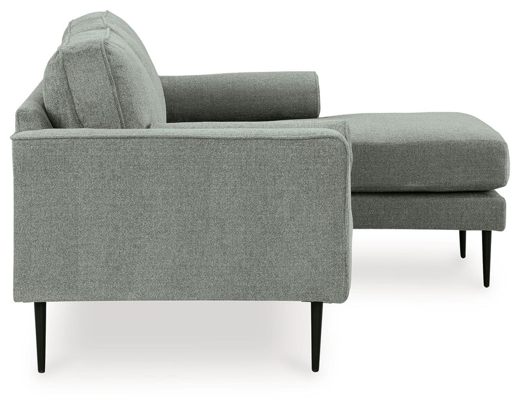 Simple comfort meets modern function in this sofa chaise. An apt addition to apartments and other small spaces, this slim-profiled... Simple comfort meets modern function in this sofa chaise. An apt addition to apartments and other small spaces, this slim-profiled piece welcomes you with its cozy character. A subtle chevron pattern on the cushions refresh the classic neutral hue, elevating the look while still suiting a variety of styles. Black accent legs add a dash of contemporary flair.Additional Dimensions Arm height: 26" Distance between arms: 72" Seat depth: 45" Seat height: 20" Top of cushion to top of back: 16" Leg height: 8" Minimum width of doorway for delivery: 32" Product Features Corner-blocked frame Loose cushions; reversible chaise cushion High-quality foam cushions wrapped in poly fiber Bolster pillows included Pillows with soft polyfill Polyester upholstery Metal accent legs with black finish Platform foundation system resists sagging 3x better than spring system after 20,000 testing cycles by providing more even support Smooth platform foundation maintains tight, wrinkle-free look without dips or sags that can occur over time with sinuous spring foundations Hazela - Sofa Chaise - Charcoal85.0"W x 58.0"D x 36.0"H - 124.0 lb View more