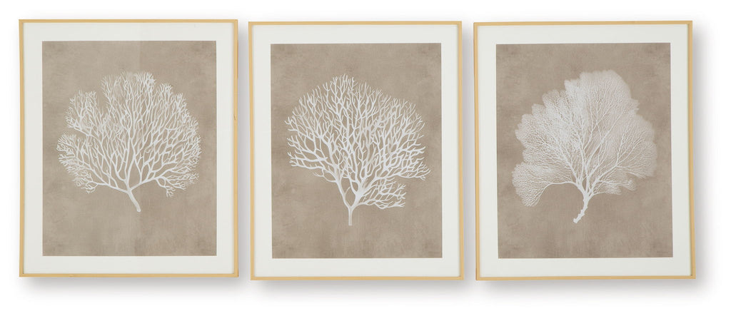 Bring a casual coastal element to your space with this wall art. The beautiful three-piece set showcases delicate coral in... Bring a casual coastal element to your space with this wall art. The beautiful three-piece set showcases delicate coral in soft, muted tones, creating a serene and calming ambience. Framed and ready to hang, these prints are just the thing for those seeking a subtle yet stylish accent for their walls.Product Features Set of 3 prints Light brown frame Acrylic front with mat D-ring bracket for hanging Vertical hanging only Hendridge - Wall Art Set (Set of 3) - Taupe / White20.0"W x 1.18"D x 24.0"H - 14.86 lb View more