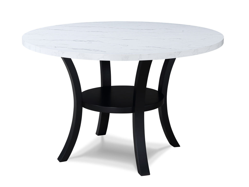 This dining group is the perfect blend of modern elegance and functionality. The sleek round tabletop with a marble-like finish... This dining group is the perfect blend of modern elegance and functionality. The sleek round tabletop with a marble-like finish offers a chic and refined aesthetic, while the bold black legs provide a striking contrast, adding visual interest to your dining area. The padded upholstered chairs, designed in a soft and neutral tone, deliver both comfort and style, making every meal a relaxed and enjoyable experience. With its clean lines and contemporary flair, this set is ideal for small spaces or casual dining environments, bringing sophistication and practicality to your home.Product Features Faux marble top Melamine finish Open shelf Isla - Round Dining Table - White / Black48.0"W x 48.0"D x 30.25"H - 63.8 lb View more