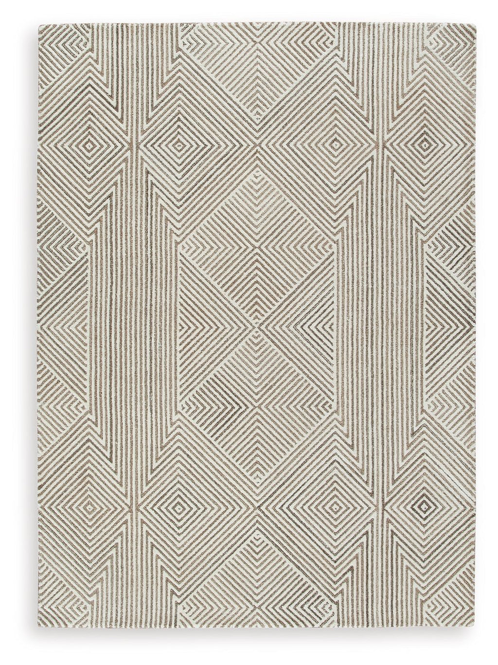 Bring cozy, casual charm to your home. With its hand-tufted geometric pattern, rich texture and captivating two-tone colorway, this area... Bring cozy, casual charm to your home. With its hand-tufted geometric pattern, rich texture and captivating two-tone colorway, this area rug brings a modern appeal to every interior. Jadott - Large Rug - Beige / Brown91.38"W x 118.38"D x 0.63"H - 67.0 lb Jadott - Medium Rug - Beige / Brown61.5"W x 84.5"D x 0.75"H - 27.0 lb View more