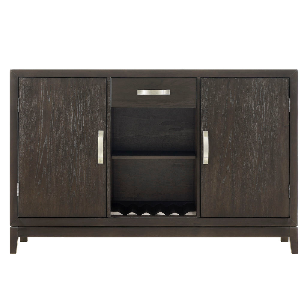 Enhance your dining or living space with this sophisticated and functional storage solution. Designed with a sleek, modern aesthetic, it... Enhance your dining or living space with this sophisticated and functional storage solution. Designed with a sleek, modern aesthetic, it features a rich, dark finish that exudes elegance while complementing a variety of décor styles. The spacious cabinets provide ample room for dinnerware, glassware, or entertaining essentials, while the open shelving is perfect for displaying your favorite bottles and décor accents. A convenient drawer adds extra storage for smaller items, keeping your space organized and clutter-free. Accented with stylish metal hardware, this piece effortlessly combines practicality with timeless charm, making it the perfect addition to any home.Product Features 2 side cabinets Stemware and bottle organization Full extension drawer Jeffries - Sideboard - Espresso56.0"W x 16.0"D x 36.0"H - 138.6 lb View more