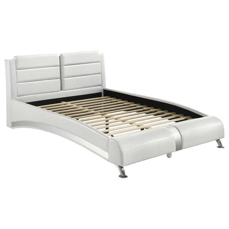 Bold and modern, this five-piece bedroom set is ideal for a contemporary home. It comes complete with a bed, nightstand, chest, dresser, and mirror to effortlessly complete your space. Each piece is coated in white polyurethane with a beautiful, high-gloss finish. Shining chrome accents add a dazzling hint of polish. With a sleek design and quality craftsmanship, this set is a stylish choice.
