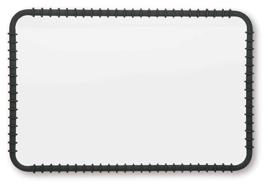 This accent mirror's sleek black finish and ribbed design add a touch of contemporary chic to any room. Its versatile... This accent mirror's sleek black finish and ribbed design add a touch of contemporary chic to any room. Its versatile hanging options allow you to display it vertically or horizontally, making it easy to complement your existing decor. The clean lines and simple shape create a modern and minimalist feel, while the substantial frame adds a touch of boldness.Additional DimensionsInner mirror: 0"Product Features Made with metal Black finish Keyhole bracket for hanging Vertical and horizontal hanging Judlow - Accent Mirror - Black24.0"W x 1.0"D x 36.0"H - 35.0 lb View more