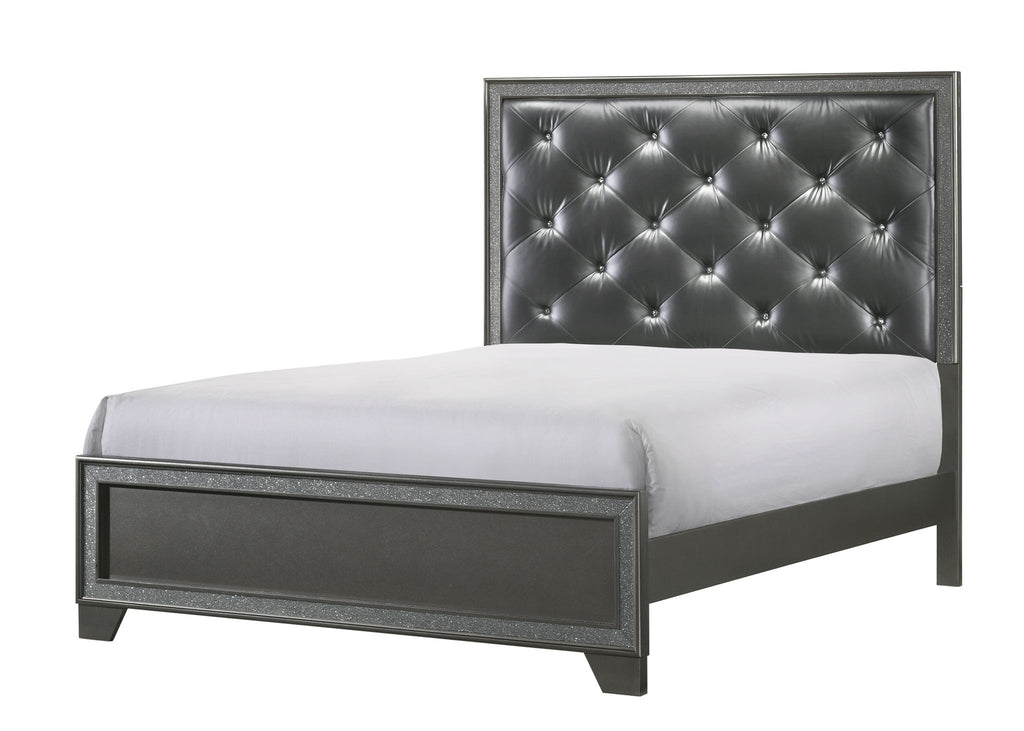 This luxurious bedroom collection exudes opulence with its dark, shimmering finishes and plush, tufted upholstery. The bed is a showstopper,... This luxurious bedroom collection exudes opulence with its dark, shimmering finishes and plush, tufted upholstery. The bed is a showstopper, featuring a high, tufted headboard that invites you to recline in comfort and style. Accompanying the bed are a matching dresser and chest, each boasting a sparkling trim that frames the rich, dark panels and complements the sleek, contemporary handles. The nightstand echoes the elegance of the bed, providing a convenient bedside space that doesn't skimp on glamour. Topped off with a generously sized mirror, the dresser completes this ensemble, reflecting both light and refined taste. Kaia - King 4 Piece Bedroom Set - Dark Gray274.79 lb Kaia - King 5 Piece Bedroom Set - Dark Gray274.79 lb Kaia - Queen 4 Piece Bedroom Set - Dark Gray261.13 lb Kaia - Queen 5 Piece Bedroom Set - Dark Gray261.13 lb View more