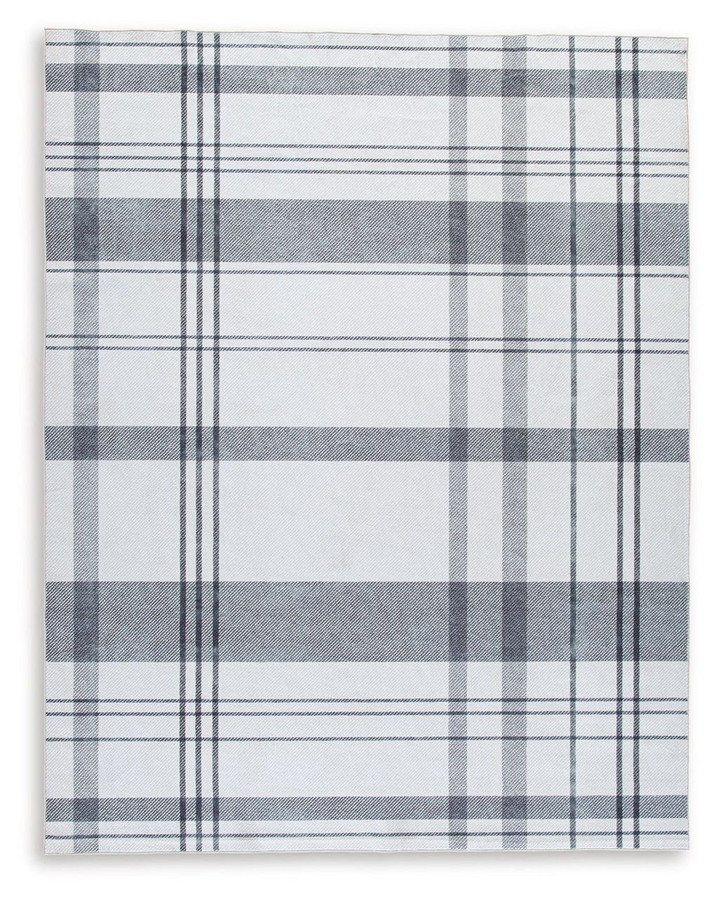 A fresh take on iconic plaid, this accent rug is both classic and contemporary. Its plaid design, with shades of... A fresh take on iconic plaid, this accent rug is both classic and contemporary. Its plaid design, with shades of gray crisscrossing against a solid cream background, has subtle variations that offer an artisanal feel. In addition, the machine woven material is durable and super soft underfoot. Kaidlow - Large Rug - Gray / Cream91.0"W x 116.0"D x 0.25"H - 21.0 lb View more