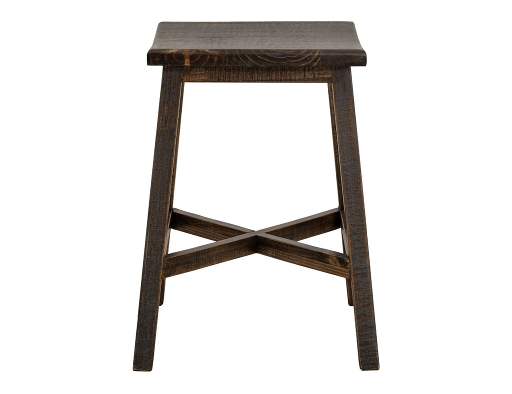 Wooden Stool. The Loft Brown stool is meticulously crafted from hand-stained and distressed pine wood, featuring a comfortable saddle seat.... Wooden Stool. The Loft Brown stool is meticulously crafted from hand-stained and distressed pine wood, featuring a comfortable saddle seat. With its striking design, this beautiful stool is sure to enhance any room decor you choose to create. Loft - 24" Stool - Two Tone Gray / Brown18.0"W x 18.0"D x 24.0"H - 18.0 lb Loft - 30" Stool - Two Tone Gray / Brown18.25"W x 18.25"D x 30.0"H - 18.0 lb View more