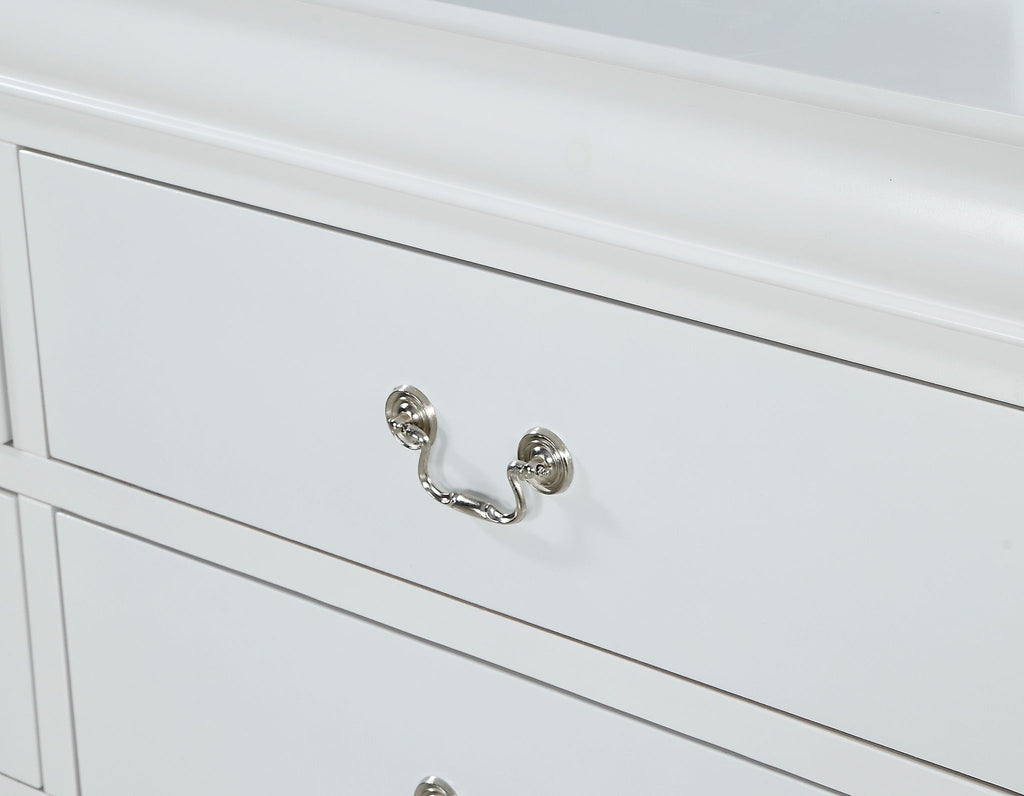 Elevate your sanctuary with this timeless bedroom collection that exudes classic charm with a modern twist. Each piece is bathed... Elevate your sanctuary with this timeless bedroom collection that exudes classic charm with a modern twist. Each piece is bathed in a crisp finish that brings a bright and airy feel to any space. The elegant bed anchors the room with its gracefully curved headboard footboard, providing a stylish backdrop for plush bedding. Complementary case goods offer ample storage, with smooth, silver-toned handles adding a subtle touch of refinement. Louis Philip - California King 4 Piece Bedroom Set - White236.99 lb Louis Philip - Full 4 Piece Bedroom Set - White214.95 lb Louis Philip - Full 5 Piece Bedroom Set - White214.95 lb Louis Philip - King 4 Piece Bedroom Set - White234.79 lb Louis Philip - King 5 Piece Bedroom Set - White234.79 lb Louis Philip - Queen 4 Piece Bedroom Set - White220.46 lb Louis Philip - Queen 5 Piece Bedroom Set - White220.46 lb Louis Philip - Twin 4 Piece Bedroom Set - White202.82 lb Louis Philip - Twin 5 Piece Bedroom Set - White202.82 lb Louis Philip - Full 4 Piece Bedroom Set - Cherry214.95 lb Louis Philip - Full 5 Piece Bedroom Set - Cherry214.95 lb Louis Philip - King 4 Piece Bedroom Set - Cherry234.79 lb Louis Philip - King 5 Piece Bedroom Set - Cherry234.79 lb Louis Philip - Queen 4 Piece Bedroom Set - Cherry220.46 lb Louis Philip - Queen 5 Piece Bedroom Set - Cherry220.46 lb Louis Philip - Twin 4 Piece Bedroom Set - Cherry202.82 lb Louis Philip - Twin 5 Piece Bedroom Set - Cherry202.82 lb Louis Philip - Full 4 Piece Bedroom Set - Black214.95 lb Louis Philip - Full 5 Piece Bedroom Set - Black214.95 lb Louis Philip - King 4 Piece Bedroom Set - Black234.79 lb Louis Philip - King 5 Piece Bedroom Set - Black234.79 lb Louis Philip - Queen 4 Piece Bedroom Set - Black220.46 lb Louis Philip - Queen 5 Piece Bedroom Set - Black220.46 lb Louis Philip - Twin 4 Piece Bedroom Set - Black202.82 lb Louis Philip - Twin 5 Piece Bedroom Set - Black202.82 lb View more