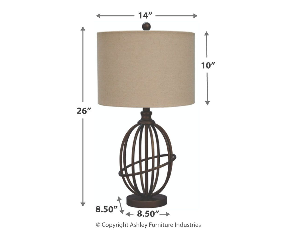This table lamp's armillary-inspired design illuminates your home with revolving style. Complemented by a dark brown finish, it's a sophisticated match for your traditional decor.