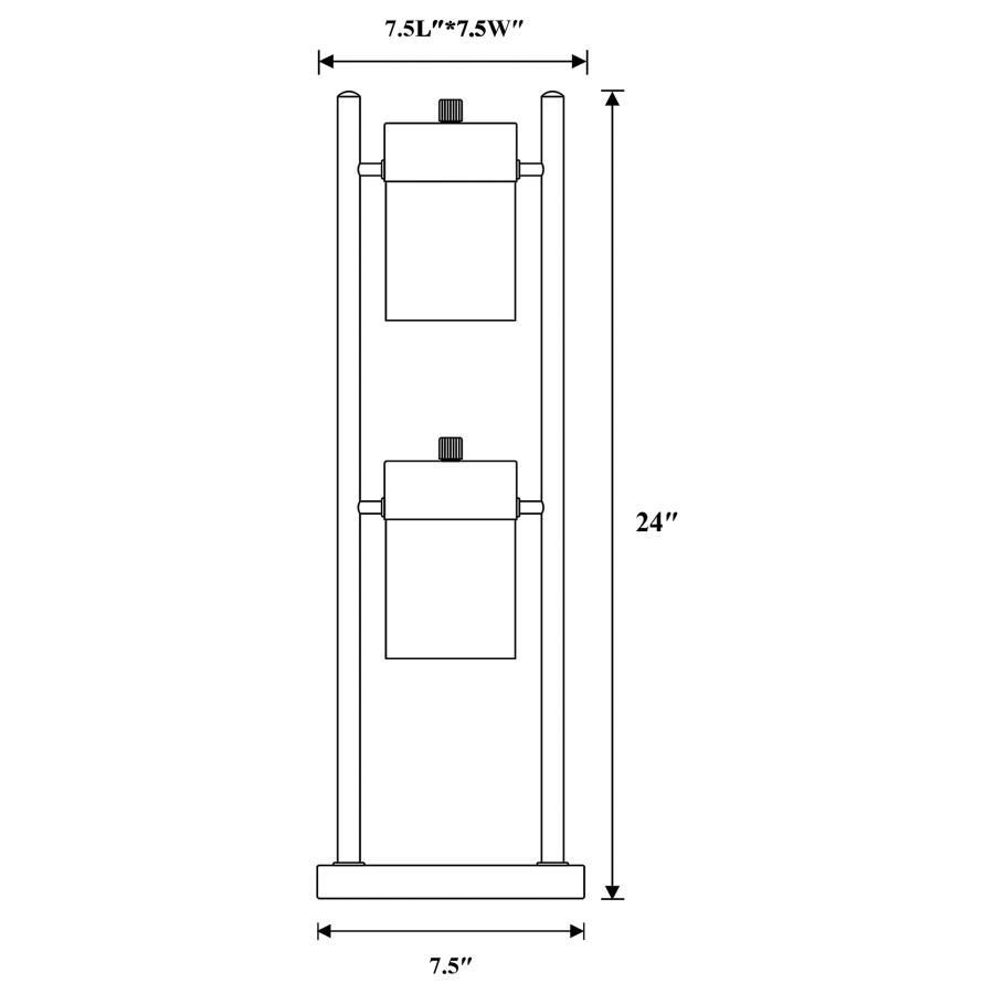 Contemporary verve with a gorgeous mix of materials and finishes. Enjoy a classic, sophisticated ambiance in this table lamp. Designed... Contemporary verve with a gorgeous mix of materials and finishes. Enjoy a classic, sophisticated ambiance in this table lamp. Designed to impress, its two-tier arrangement of swivel lamps plays on a linear model and deliver twice the lighting. A brushed silver base and frame blend beautifully with frosted cylinder and plastic shades. Operates with a handy on off switch. Munson - 2 Swivel Lights Bedside Table Lamp - Silver7.5"W x 7.5"D x 25.0"H - 4.29 lb View more