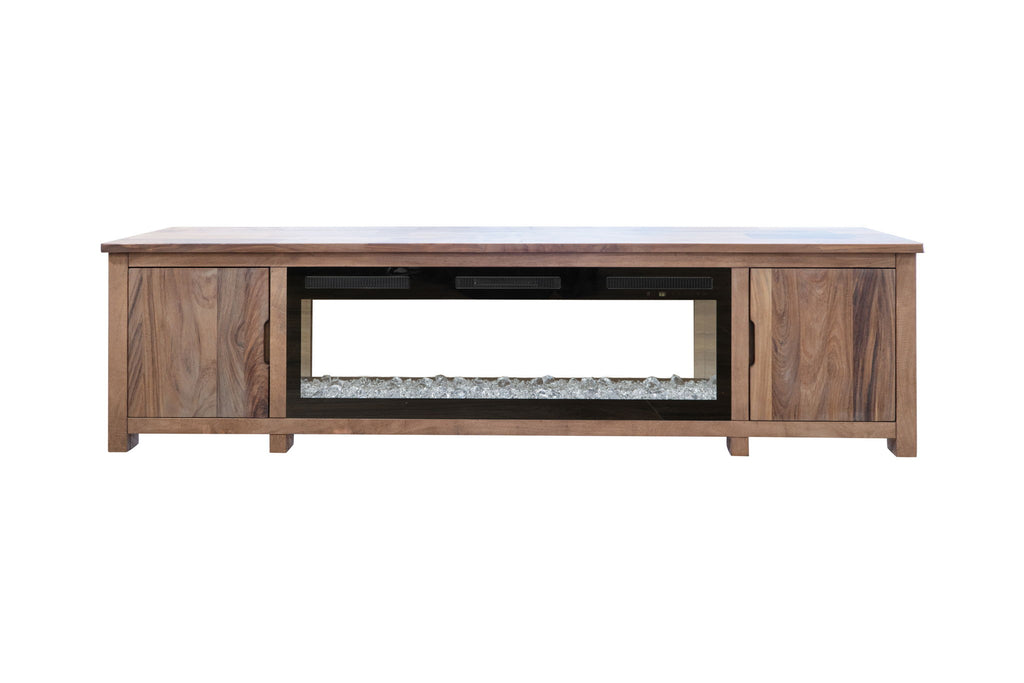 The Natural Parota collection exudes sophistication and timeless elegance, effortlessly enhancing the aesthetic of any room. Its striking presence is... The Natural Parota collection exudes sophistication and timeless elegance, effortlessly enhancing the aesthetic of any room. Its striking presence is guaranteed to leave a lasting impression.Product Features Tops are crafted from parota wood, while sustainable mango wood is used for the rest of the case piece. Clear lacquer on top protects the natural tone of the wood, while a multi-step stain finish is applied to the rest of the case. Mortise and tenon construction offers stability and durability. Doors equipped with magnetic catches. Carved wooden pulls Electric fireplace Infinity Flame Effect – Vivid bright life like flame for a beautiful fireplace experience. The Crystal option adds beautiful sophistication and highlights the coloured lighting. View more