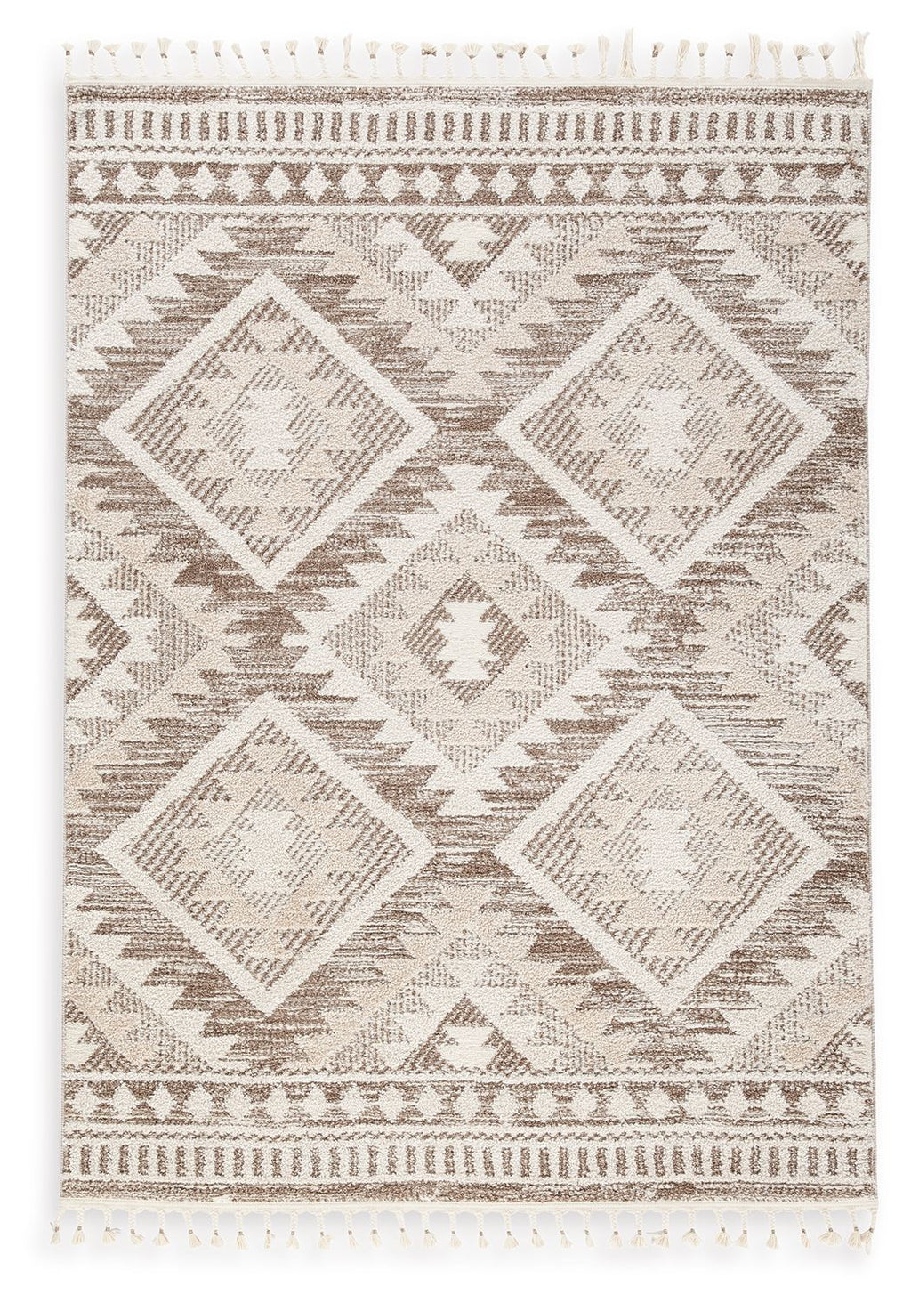Today’s casual, carefree aesthetics are reflected in this rug. For those with an inclination for neutral hues and an easy-breezy... Today’s casual, carefree aesthetics are reflected in this rug. For those with an inclination for neutral hues and an easy-breezy vibe, the diamond design and tasseled edge offer a conventional take on modern boho. This rug harmonizes well with natural greenery, simple architectural forms and inviting accents. Odedale - Large Rug - Tan / Cream94.5"W x 129.0"D x 0.25"H - 26.0 lb View more