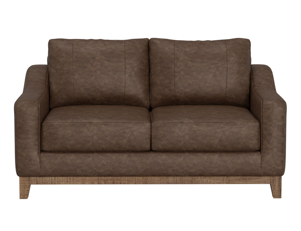 Wooden Frame & Base, Loveseat. The Olivo collection seamlessly blends clean lines with a harmonious fusion of both organic and... Wooden Frame & Base, Loveseat. The Olivo collection seamlessly blends clean lines with a harmonious fusion of both organic and geometric shapes, offering unparalleled comfort for your space with its mid-century modern style, marked by subtle curves on padded armrests.Product Features Brown. 29% Polyester, 3% Viscose, 68% PU Constructed with plywood 15 mm thickness 5-layer ply, providing strength and durability to the frames. Reinforced corner blocks keep the frame secure No-sag sinuous springs with tie wire for uniform seating. Elastic webbing with loose pillow backs using siliconized virgin Dacron fiber utilizing sewn-in panels. (No migration). Fully padded with microfilaments foam for a better finish look. Exposed solid wood incorporating finishes to match case-good collections. Dual-density foam on seats. 1.8 Density core wrapped with resilient and 1.4 density foam for an ultimate Comfort Seat. Dacron-wrapped Cushion cores Ultra-crowning on seats. Includes a decorative throw pillow. Olivo - Comfort Loveseat - Chocolate Brown62.25"W x 38.5"D x 35.0"H - 119.0 lb View more