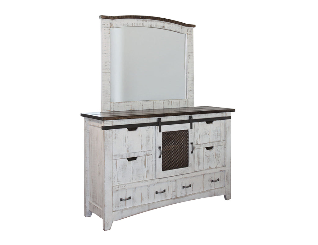 6 Drawer 1 Door Dresser. Introducing our Pueblo Gray collection, crafted from solid pine wood. This rustic collection is the... 6 Drawer 1 Door Dresser. Introducing our Pueblo Gray collection, crafted from solid pine wood. This rustic collection is the perfect addition to bring your dream space to life. It features a hand-distressed finish on the tops. Pueblo - Dresser - Antiqued White61.5"W x 18.0"D x 38.5"H - 162.0 lb View more
