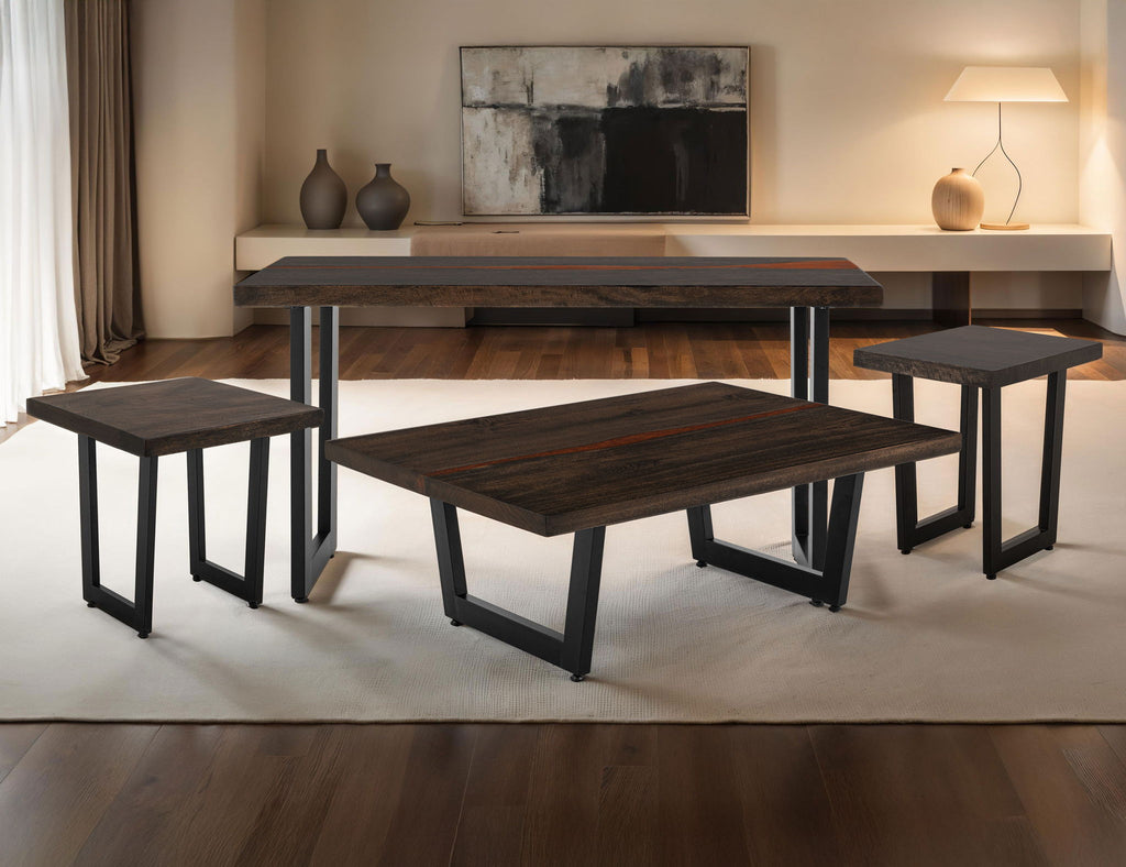 Cocktail Table DeLux. The Raramuri occasional table set is a high-quality addition to any living room, crafted from sustainable mango... Cocktail Table DeLux. The Raramuri occasional table set is a high-quality addition to any living room, crafted from sustainable mango wood. Each table features a unique natural live-edge top. The tops of both the cocktail and sofa tables are infused with epoxy resin and copper mineral flakes, enhancing their durability and visual appeal. This occasional table set highlights the natural beauty and tonal variations of mango wood. The metal base offers a stable and long-lasting foundation, making these tables ideal for everyday use.Product Features Crafted of sustainable mango wood. Multi-step lacquer in a brown finish. Mortise and tenon construction offers stability and durability. The table's top is enhanced with epoxy resin infused with copper mineral flakes. The Deluxe table features casters that provide ease of mobility. Raramuri - Cocktail Table Delux - Bramble Bush Brown55.0"W x 35.5"D x 18.25"H - 95.0 lb View more