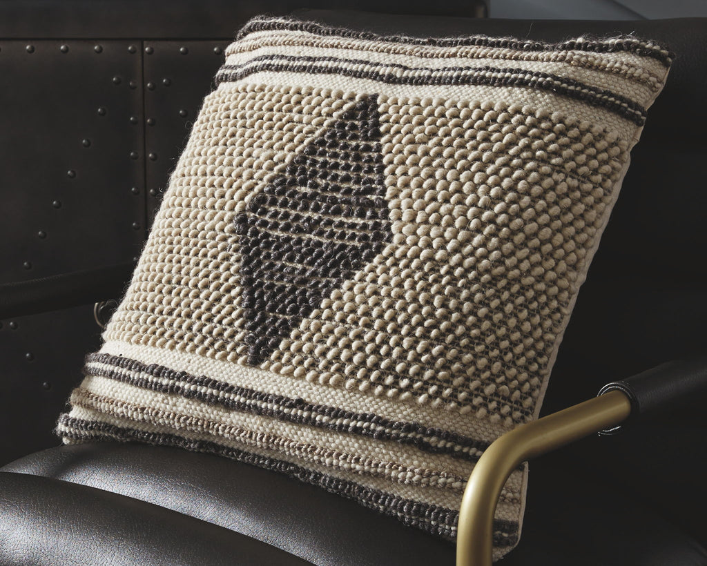 This designer accent pillow is such a posh pick for an effortlessly chic vibe. Loaded with feel-good texture and handwoven... This designer accent pillow is such a posh pick for an effortlessly chic vibe. Loaded with feel-good texture and handwoven of cotton and wool, the diamond-patterned cover is pure artistry. Ricker - Pillow (Set of 4) - Gray / Cream20.0"W x 7.0"D x 20.0"H - 14.0 lb Ricker - Pillow - Gray / Cream20.0"W x 7.0"D x 20.0"H - 3.0 lb View more