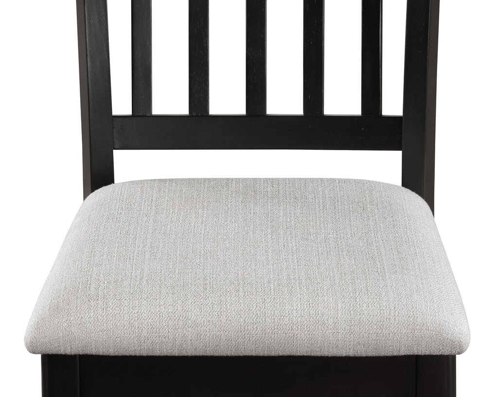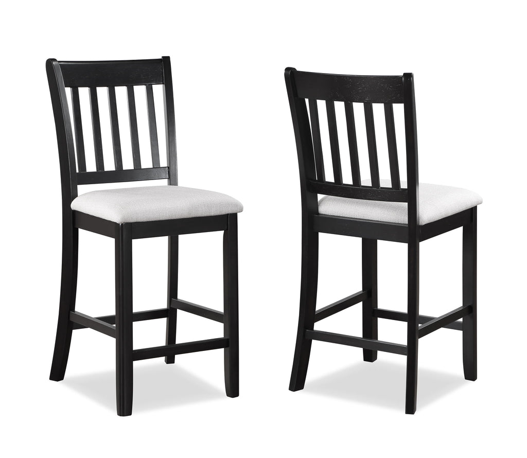 Introducing a modern counter-height dining set with a touch of classic charm. Featuring a deep black finish, complemented by a... Introducing a modern counter-height dining set with a touch of classic charm. Featuring a deep black finish, complemented by a contrasting light table top inset, this ensemble offers both comfort and straightforward style. The vertical slats on the chairs provide a subtle design detail, making it a versatile choice for various dining spaces. Durable, stylish, and functional, it's the perfect addition for everyday meals or special occasions.Product Features 2 toned table veneer inlay Slat back chairs Solid wood legs Salvador - 5 Piece Counter Height Set - Charcoal / White42.0"W x 42.0"D x 36.0"H - 129.8 lb View more