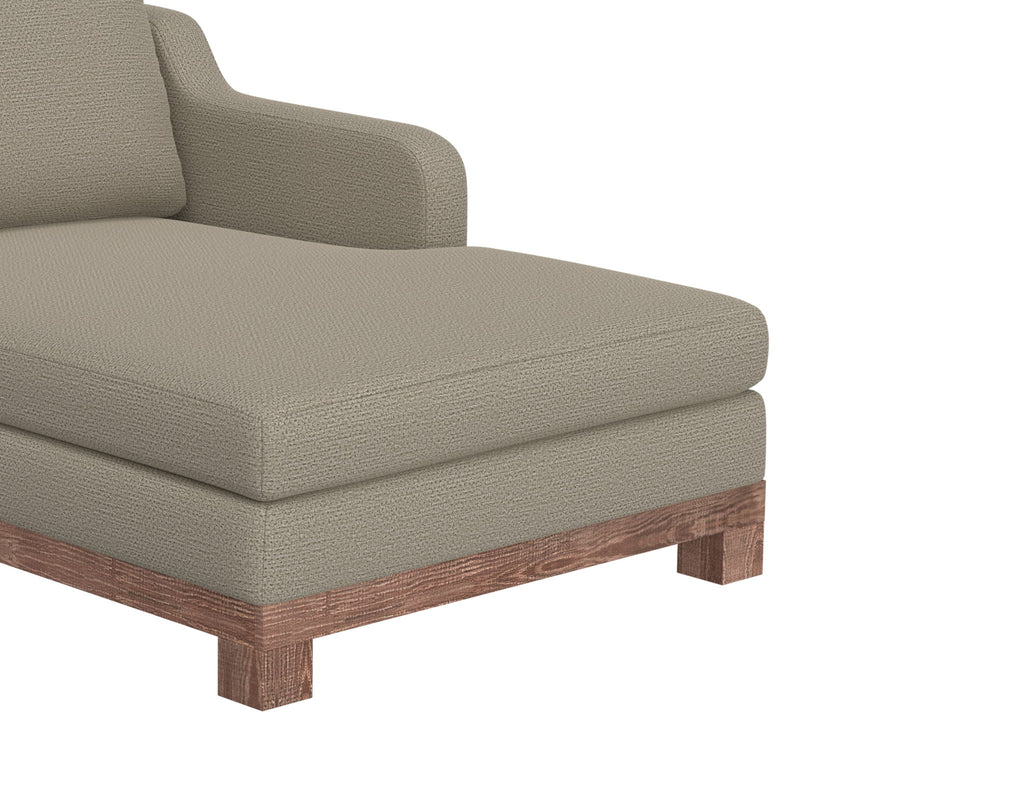 Wooden Frame & Base, Sectional. With its chunky, wide silhouette, the Samba collection infuses your living room with a touch of traditional charm. Supported by a sturdy frame crafted from solid pine wood, it rests gracefully on low-profile block feet with a rich brown hue.