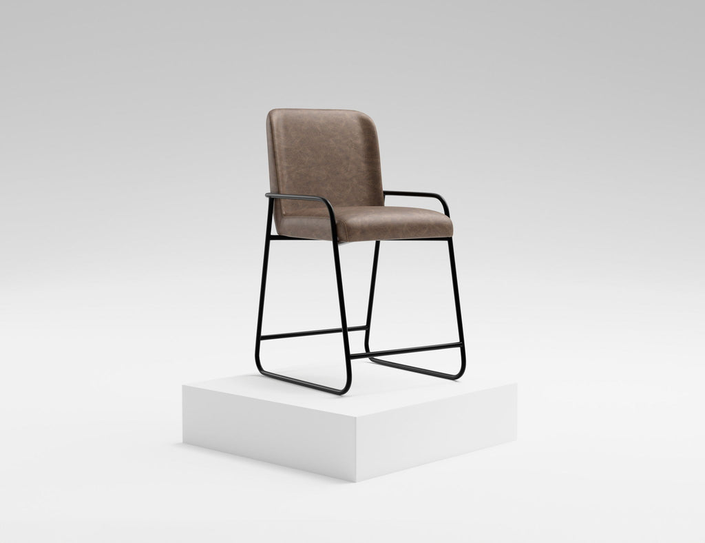 Wooden Frame & Metal Base, 24" Upholstered Barstool. Introducing the epitome of comfort and style in your home bar or... Wooden Frame & Metal Base, 24" Upholstered Barstool. Introducing the epitome of comfort and style in your home bar or kitchen – our upholstered barstool. Crafted with meticulous attention to detail, this barstool combines functionality with elegance to create the perfect seating solution for any modern living space.Product Features Brown. 29% Polyester, 3% Viscose, 68% PU. Constructed with plywood 15 mm thickness 5-layer ply, provides strength and durability to the frames. 3 Inch seat with rubber, each with different density and delcron. Sit 24" off the ground Iron frame. Seating - 24" Upholstered Barstool - Chocolate Brown / Black21.0"W x 24.5"D x 43.25"H - 28.0 lb View more