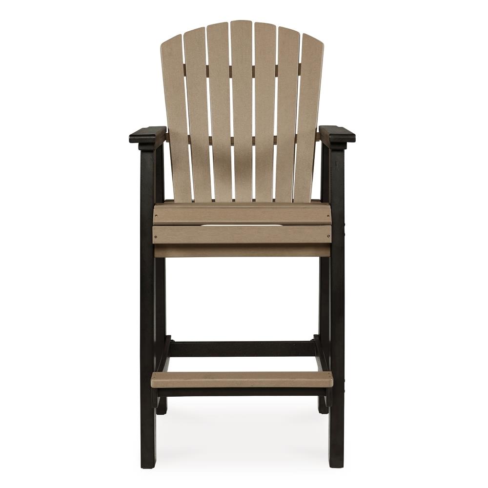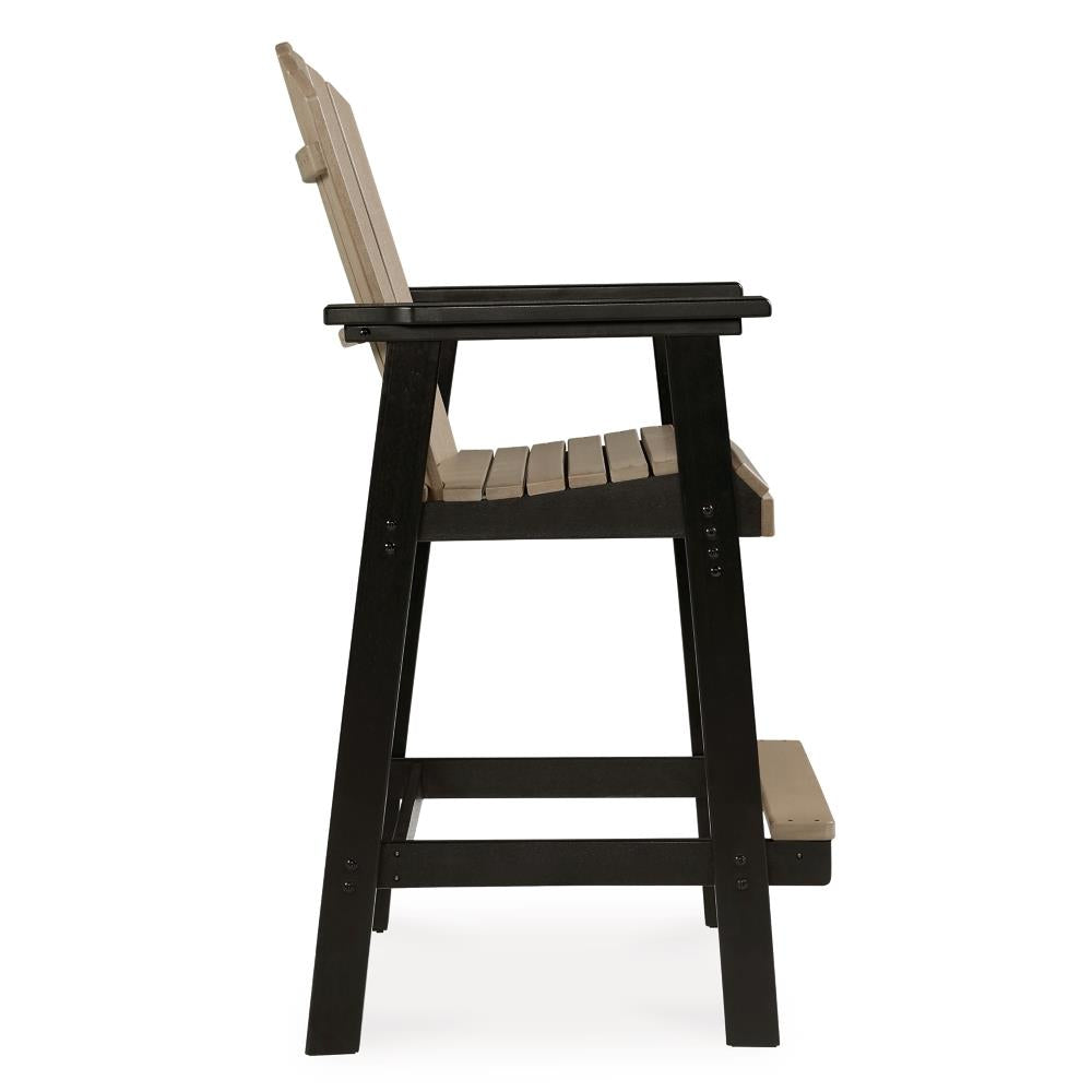 Raise the bar on outdoor living with this round bar table and bar stool set. Crafted for style, comfort and... Raise the bar on outdoor living with this round bar table and bar stool set. Crafted for style, comfort and durability, the set impresses with a standout two-tone finish that pairs a light driftwood-look and black finish for twice the interest. Round table design keeps everyone in the flow of conversation, while the stools cater with sturdy armrests, an ample footrest, high shell back and waterfall wrapped seat for curvaceous comfort. View more