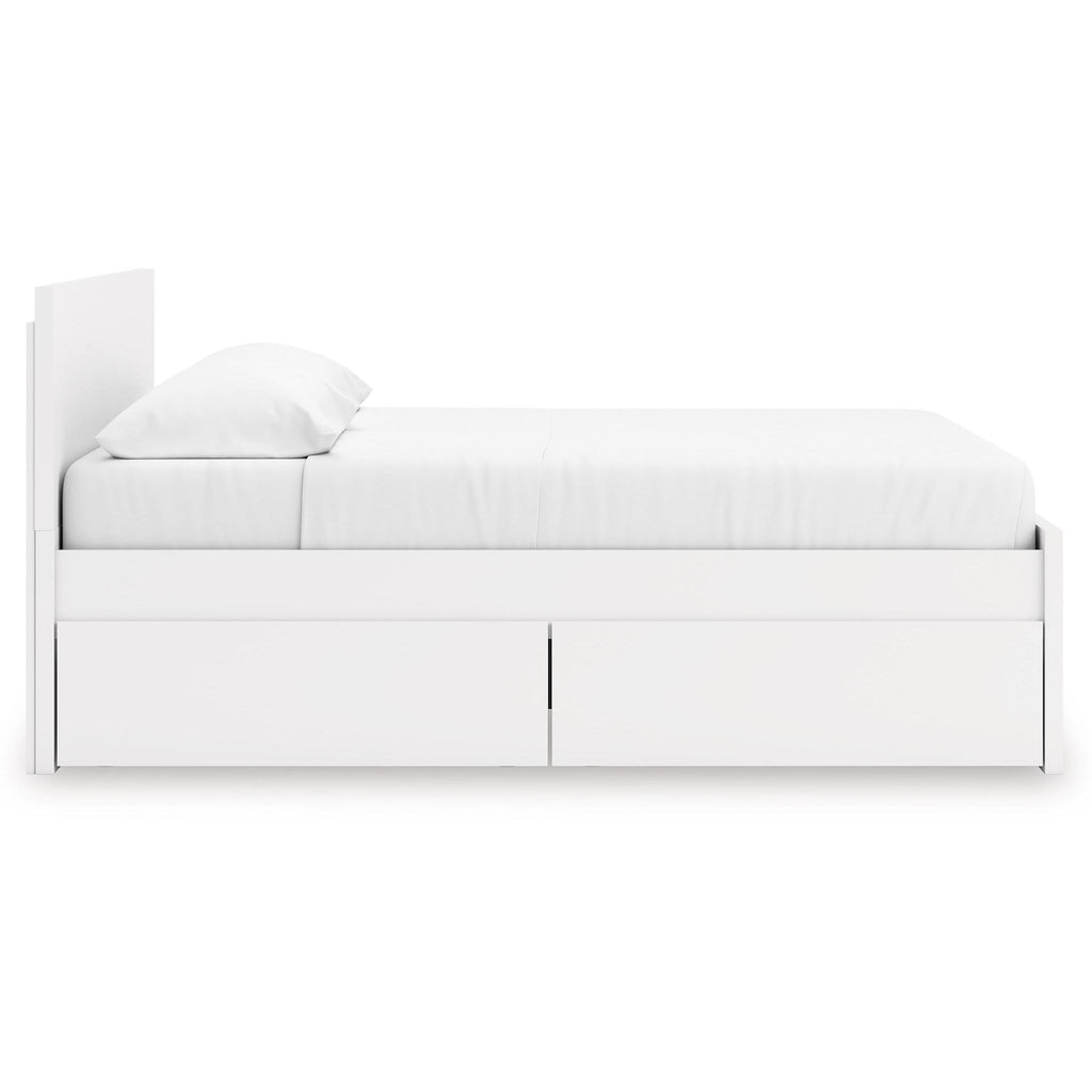 • Includes headboard, panels, rails, roll slats and 2 side storage drawers