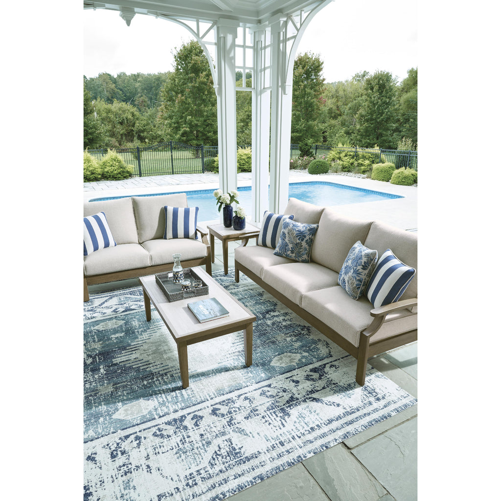 • Zippered cushions and throw pillows covered in solution-dyed high-performance fabric