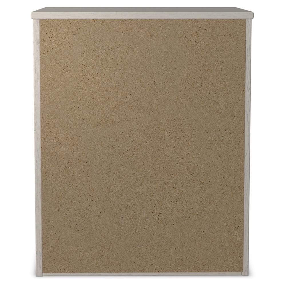 With its clean-lined look and modern attitude, this full panel bed is a fresh style awakening. Crisp, white hue over... With its clean-lined look and modern attitude, this full panel bed is a fresh style awakening. Crisp, white hue over subtle replicated wood grain easily complements other furniture finishes. Simple, unadorned profile is given depth and dimension with the addition of plank style moulding on the headboard—proof that beauty lies in the details. Matching dresser, mirror and nightstand. View more