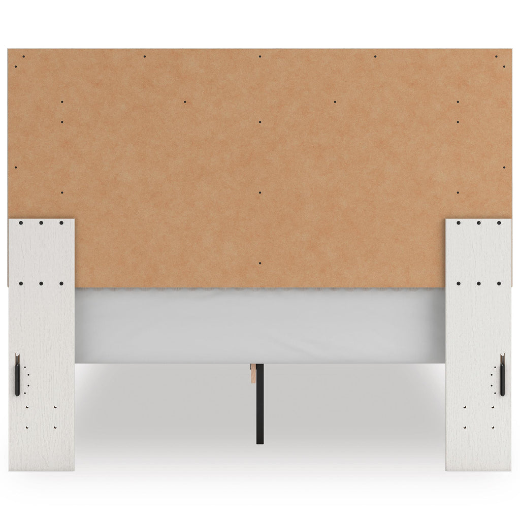 • Includes upholstered panel headboard, panel footboard, platform rails and roll slats