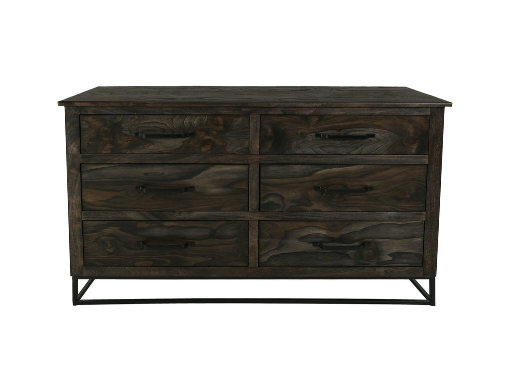 6 Drawer Dresser. Enhance your space with our exquisite Dark Teak Collection. Crafted from beautiful Mango, Melina wood, and engineered... 6 Drawer Dresser. Enhance your space with our exquisite Dark Teak Collection. Crafted from beautiful Mango, Melina wood, and engineered Teak, this collection showcases the natural beauty of the wood grain. Designed to elevate your home, it creates a relaxing and inviting atmosphere. Explore our collection today and discover how to elevate your home with timeless elegance!Product Features Crafted of sustainable mango, melina wood, and engineered teak. Translucent multi-step water-based finish. Mortise and tenon construction offers stability and durability. English dovetail on 100% solid wood drawer fronts. Hafele steel slides. The top drawers on the Dresser are lined with durable microfiber. Custom metal pulls with non-chip finish. The Dark Teak Dresser offers plenty of storage space and successfully combines both functionality and style. Mirror sold separately. Teak - Dresser - Oil Black63.0"W x 19.75"D x 38.25"H - 204.0 lb View more