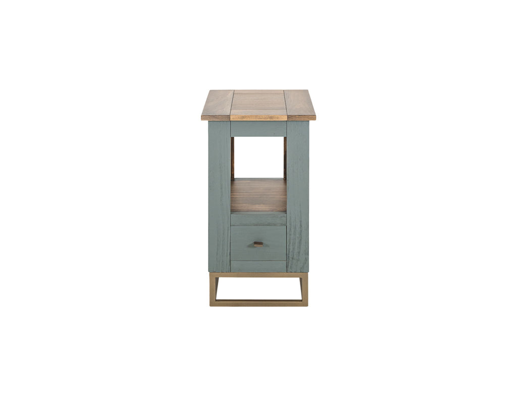 The Timber Occasional Tables are remarkable furniture pieces that beautifully combine functionality and style. Designed to enhance your living room,... The Timber Occasional Tables are remarkable furniture pieces that beautifully combine functionality and style. Designed to enhance your living room, these tables are crafted from high-quality pine and poplar wood and showcase a rich, multi-step lacquer in an eye-catching green finish. They are accented by a hand-rubbed top that enhances the wood's natural beauty. The chair-side table's rectangular shape combines versatility and elegance. It features a convenient drawer for discreet storage and an open shelf for displaying decorative items or books. Its sleek gold metal base provides sturdy support and adds a touch of modern sophistication. The Timber Chairside table is designed to complement the other pieces in the collection and enhance the aesthetic of any room. Timber - Chairside Table - Forest Green14.0"W x 18.0"D x 25.25"H - 29.0 lb Timber - End Table - Forest Green22.75"W x 22.75"D x 25.25"H - 50.0 lb Timber - Sofa Table - Forest Green54.75"W x 16.0"D x 29.75"H - 93.0 lb View more