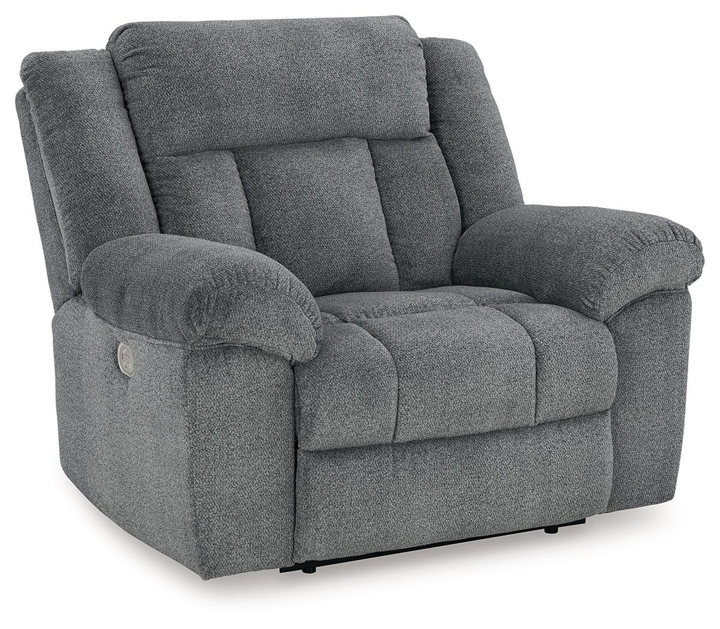 Big, bold comfort. Game time and movie nights meet their match with this power recliner. Made for ultimate indulgence, an... Big, bold comfort. Game time and movie nights meet their match with this power recliner. Made for ultimate indulgence, an extra-deep seat encourages you to sit back and bliss out. Customize the recliner and headrest to find your ideal viewing position with effortless one-touch controls. And with plush upholstery in a trendy hue, you won’t need to sacrifice style for cozy seating. Tip-off - Power Recliner With Adj Headrest - Slate52.0"W x 42.0"D x 45.0"H - 165.0 lb Tip-off - Power Recliner With Adj Headrest - Wheat52.0"W x 42.0"D x 45.0"H - 165.0 lb View more