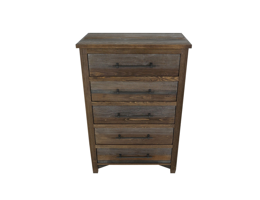 5 Drawer, Chest. Elevate your bedroom environment with the Town collection. Introducing our exquisite Town chest, a perfect blend of... 5 Drawer, Chest. Elevate your bedroom environment with the Town collection. Introducing our exquisite Town chest, a perfect blend of rustic charm and modern sophistication. With its iron center handle pulls, this chest adds an industrial touch that beautifully contrasts with its warm and inviting design. It is not only a practical storage solution but also serves as a striking statement piece that enhances any room with its unique character and style. Experience the perfect fusion of elegance and utility with the Town chest, where timeless beauty meets everyday functionality.Product Features Crafted of pine and poplar wood. Multi-step lacquer in brown and gray highlights. Mortise and tenon construction offers stability and durability. English dovetail on 100% solid wood drawer fronts. Hafele steel slides. Custom metal handles with non-chip finish. Town - Chest - Multicolor35.75"W x 19.75"D x 53.0"H - 174.0 lb View more